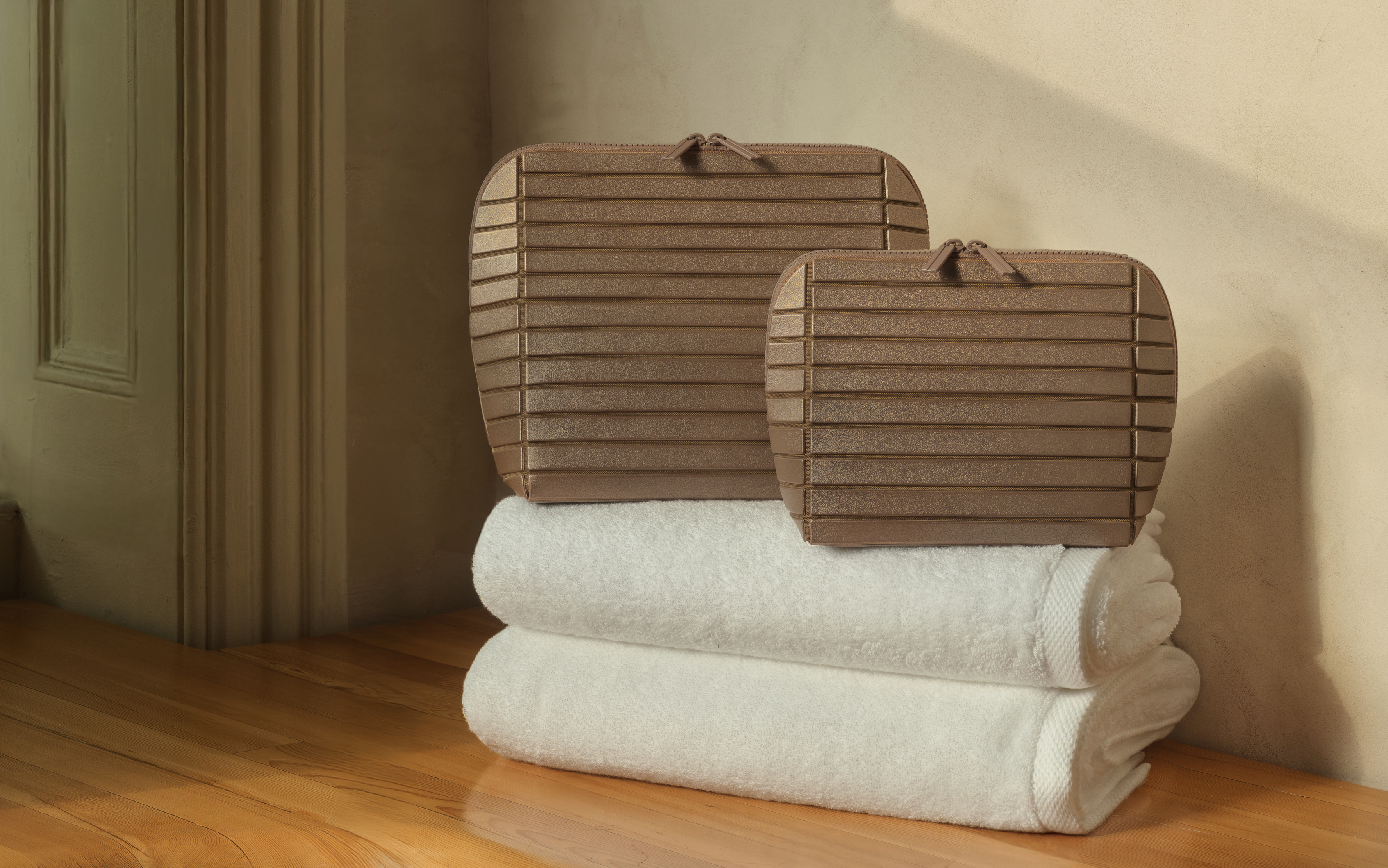 At Parallelle, we create travel accessories that are as structured and organized as they are beautiful. Our signature Traveller — a patented fold-down makeup bag — keeps your essentials visible, upright, and ready wherever your journey takes you.